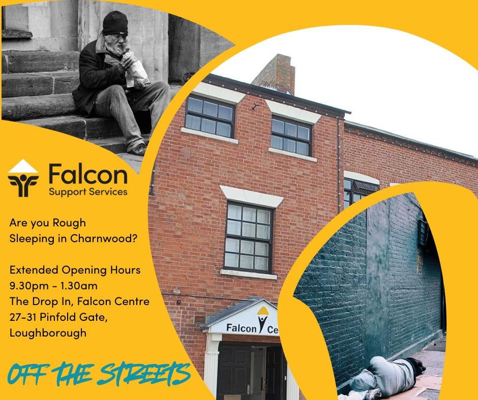 On 4 August 2025, Falcon Support Services launched our Off the Streets project, funded through the Community Safety Partnership. As part of this initiative, the organisation extended its day centre opening hours to include overnight provision, operating from 9:30 p.m. to 1:30 a.m. This allowed individuals sleeping rough in Charnwood to access a safe, warm environment during the night, offering vital respite from the streets. Throughout these extended hours, visitors were also provided with hot meals, drinks, and essential support.